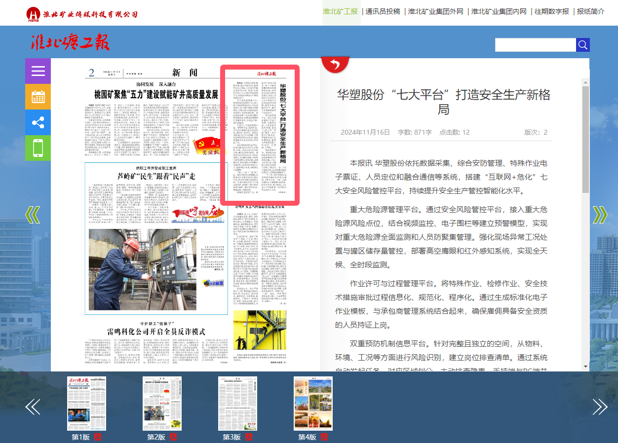 《淮北矿工报》11月16日二版:华塑股份“七大平台”打造安全生产新格局 -ag真人官网