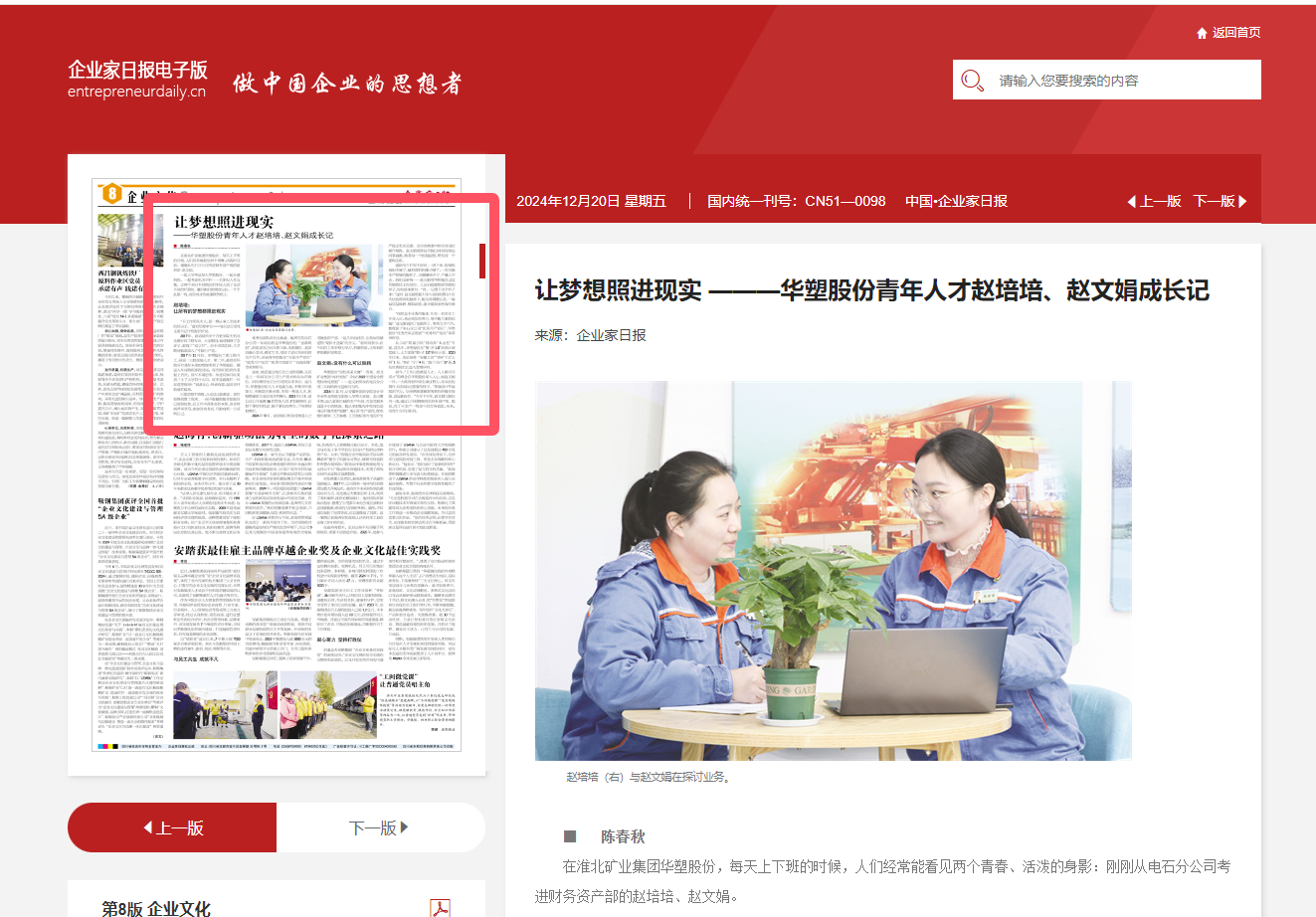 《企业家日报》12月20日二版头条:让梦想照进现实 ———华塑股份青年人才赵培培、赵文娟成长记 -ag真人官网