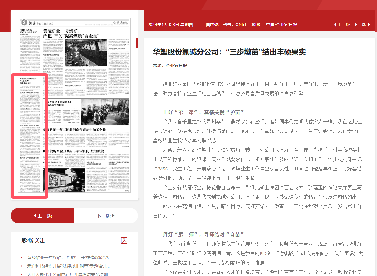 《企业家日报》12月26日二版:华塑股份氯碱分公司:“三步墩苗”结出丰硕果实 -ag真人官网