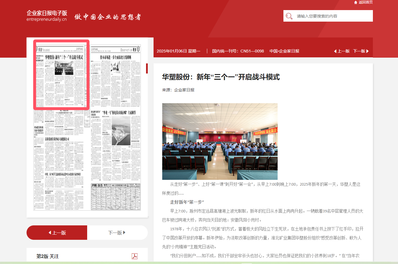 《企业家日报》1月6日二版头条:华塑股份:新年“三个一”开启战斗模式 -ag真人官网