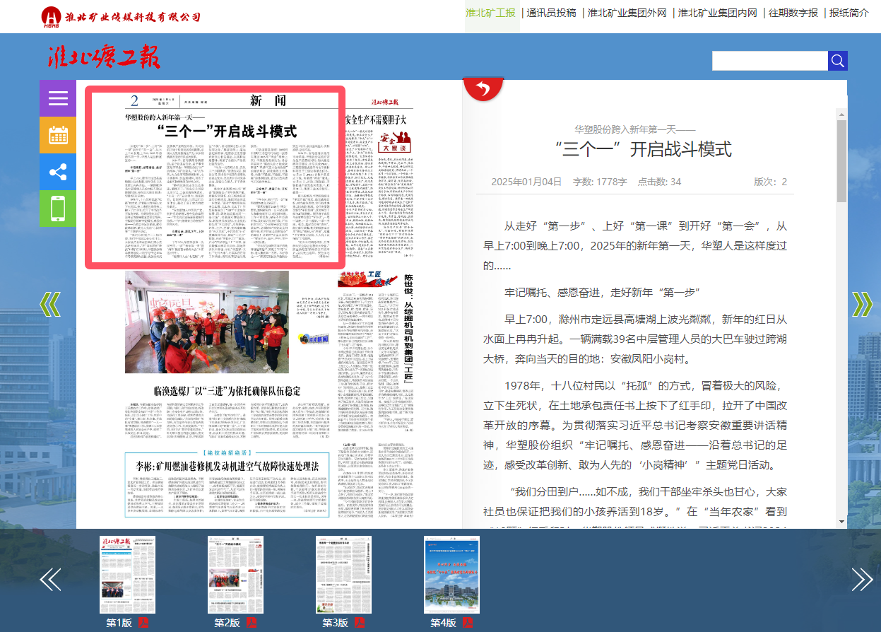 《淮北矿工报》1月4日二版头条:华塑股份跨入新年第一天——“三个一”开启战斗模式 -ag真人官网