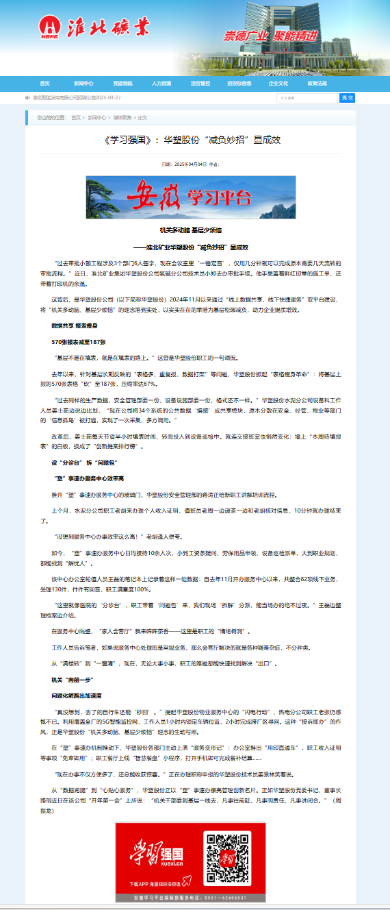 《学习强国》4月4日:华塑股份“减负妙招”显成效 -ag真人官网