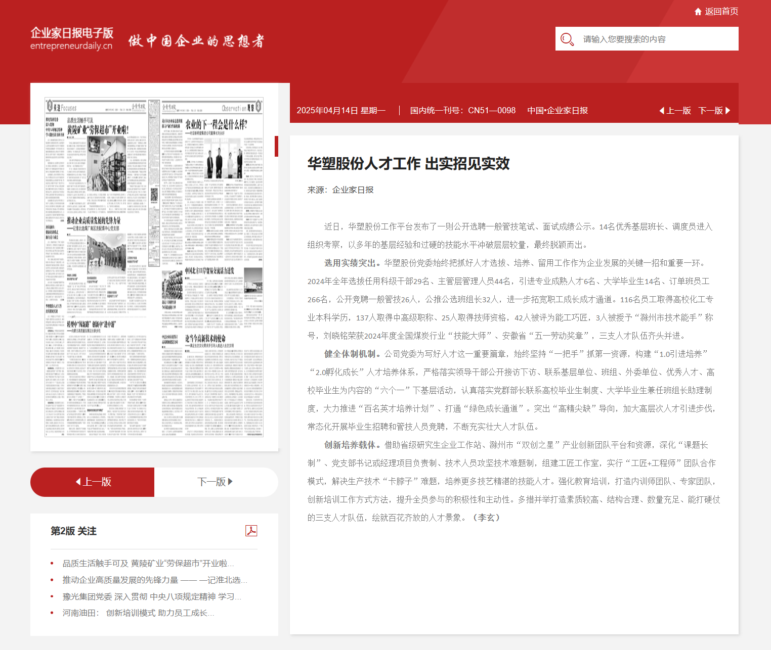 《企业家日报》4月14日四版:华塑股份人才工作出实招见实效 -ag真人官网