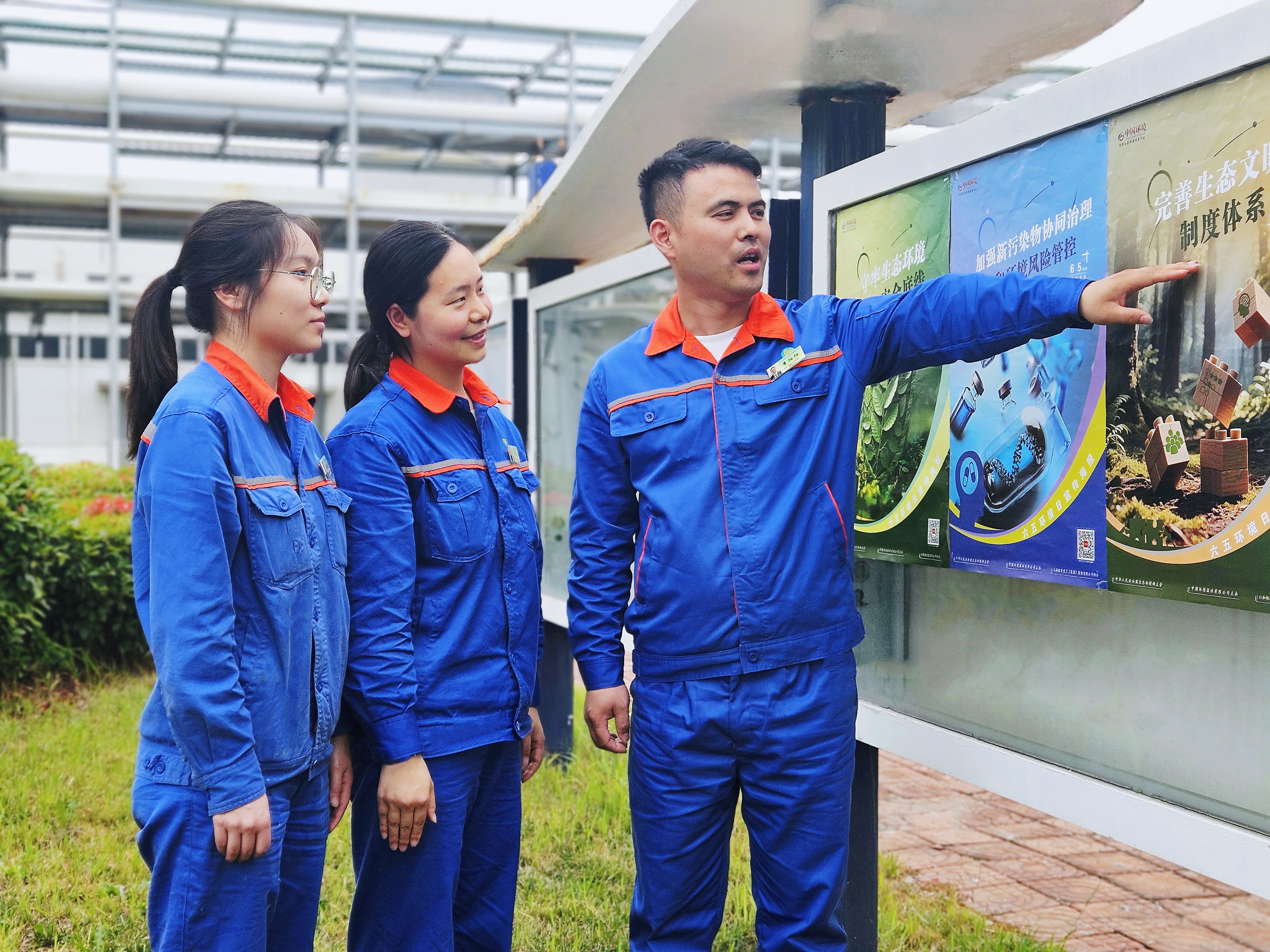 在第54个世界环境日到来之际,氯碱分公司围绕“美丽中国我先行”主题,通过观看环保主题宣传片、开展环保知识宣讲、张贴主题宣传海报等方式,全方位普及环保知识、弘扬生态文化,动员广大职工积极践行绿色低碳生活方式,争当生态文明的参与者、实践者和推动者,以实际行动守护绿水青山。图为6月3日,氯碱分公司职工在分公司宣传栏前学习六五环境日宣传海报。