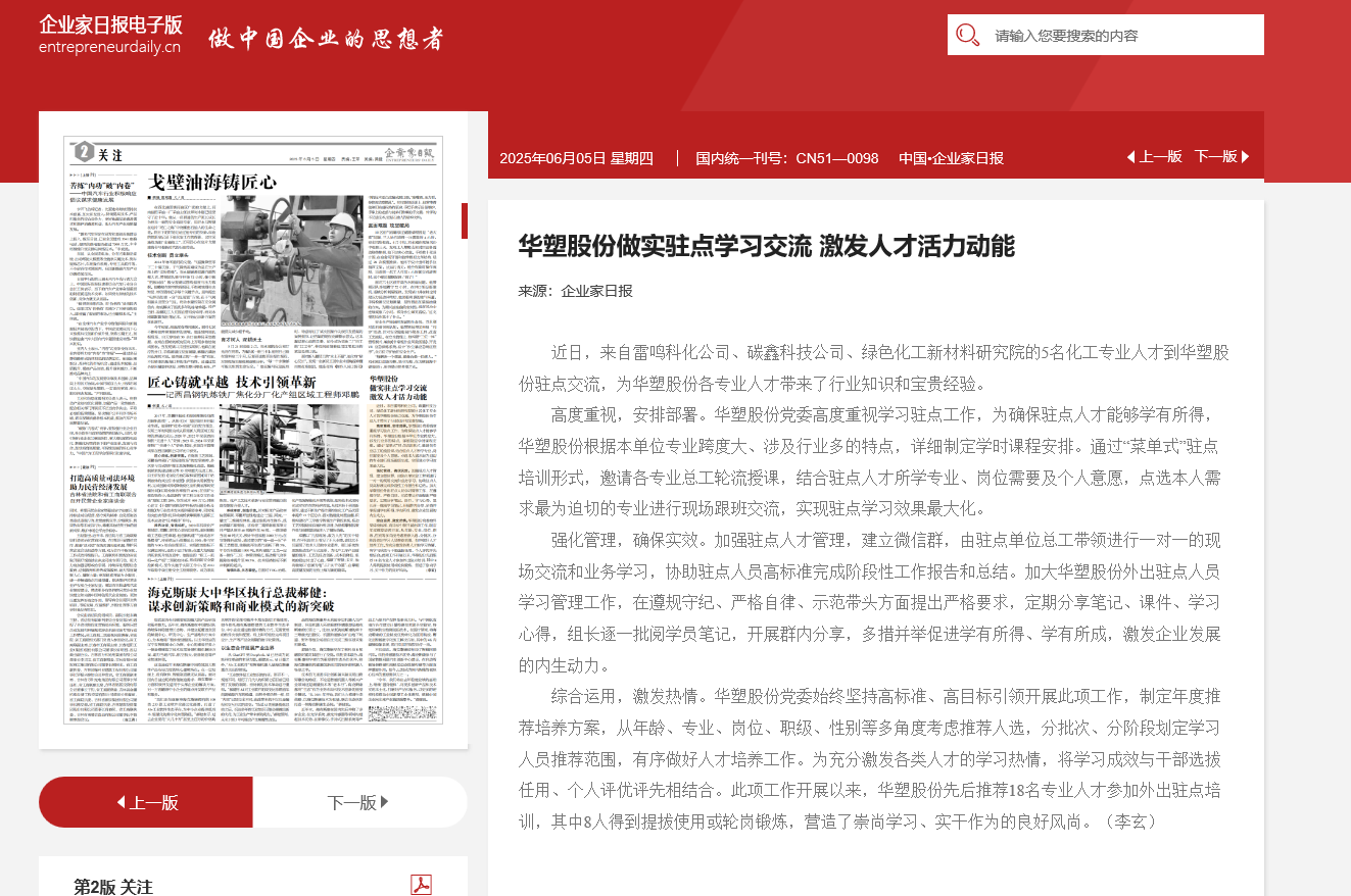 《企业家日报》6月5日二版:华塑股份做实驻点学习交流激发人才活力动能 -ag真人官网